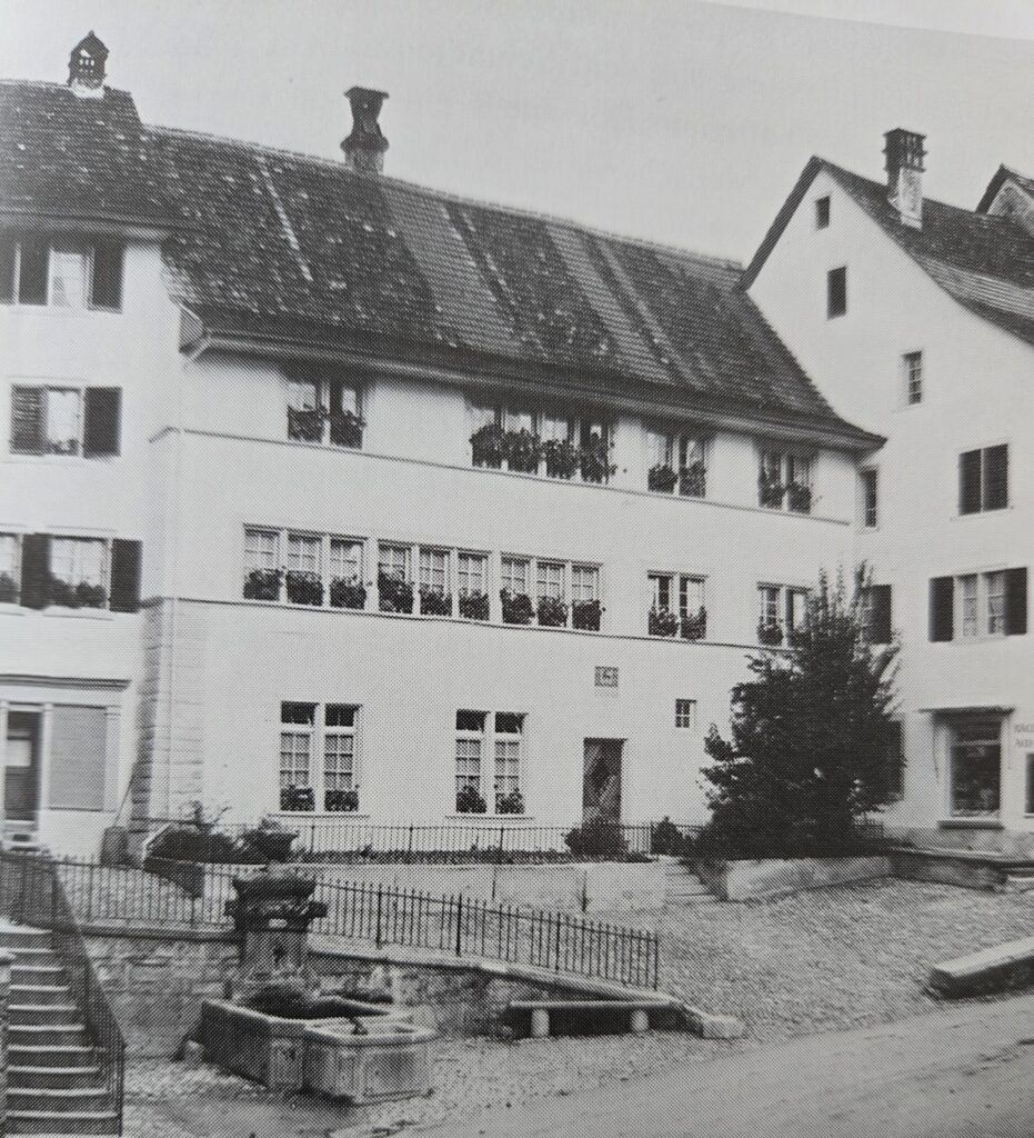 Die Schulstube befand sich an der Obergass in der sogenannten Helferei, die man 1683 erneuert hatte. Das alte Gebäude war vermutlich schon vor der Reformation errichtet und 1593 ausgebaut worden. Im ersten Stock wohnte der Schulmeister, im Erdgeschoss mussten die vielen Schüler in einem «niedrigen dunklen Gemach» unterrichtet werden. Nicht verwunderlich ist deshalb, dass die Satzungen für die Landschulen von 1684 vorschrieben, « es soll auch der Schulmeister die Stuben alle Tage vor und nach Mittag mit Feuer von Recholteren (Wachholder) wohl beräuchern, den üblen Schulgeruch zu vertreiben. Nach der Teilung der Schule wurde ein zweites Schulzimmer, vorerst provisorisch, im Arsenal über dem Gemeindewaschhaus eingerichtet, dann in der Gemeindestube des Rathauses, gleich über dem Schlachtlokal. Da gab es willkommene Abwechslung im langweiligen Schulbetrieb. Die Sekundarschule wurde in der früheren Lehrerwohnung im ersten Stock des Helferei untergebracht.
